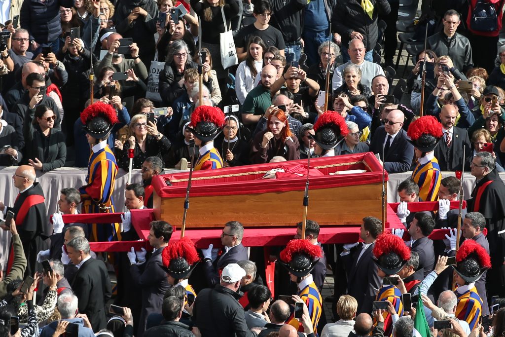 A Szent Péter tér megközelítése is gondot jelent, mivel az oda vezető sugárúton a tömeg szabályos falat alkot. A tömeg irányítása a nap folyamán többször is kudarcba fulladt. Csütörtökön reggel héttől éjfélig, pénteken reggel héttől este hétig tart nyitva a bazilika. Péntek este nyolc órakor lezárják Ferenc pápa koporsóját.