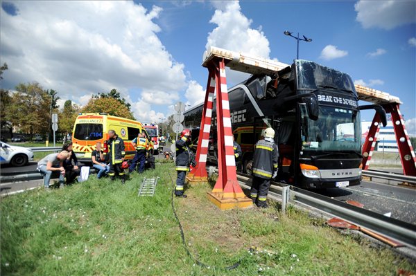 A helyszínről származó információk szerint hárman sérültek meg a balesetben. A magasságkorlátozó mintegy 3 méter hosszan, 40-50 centiméter mélyen leborotválta a busz tetejét.
