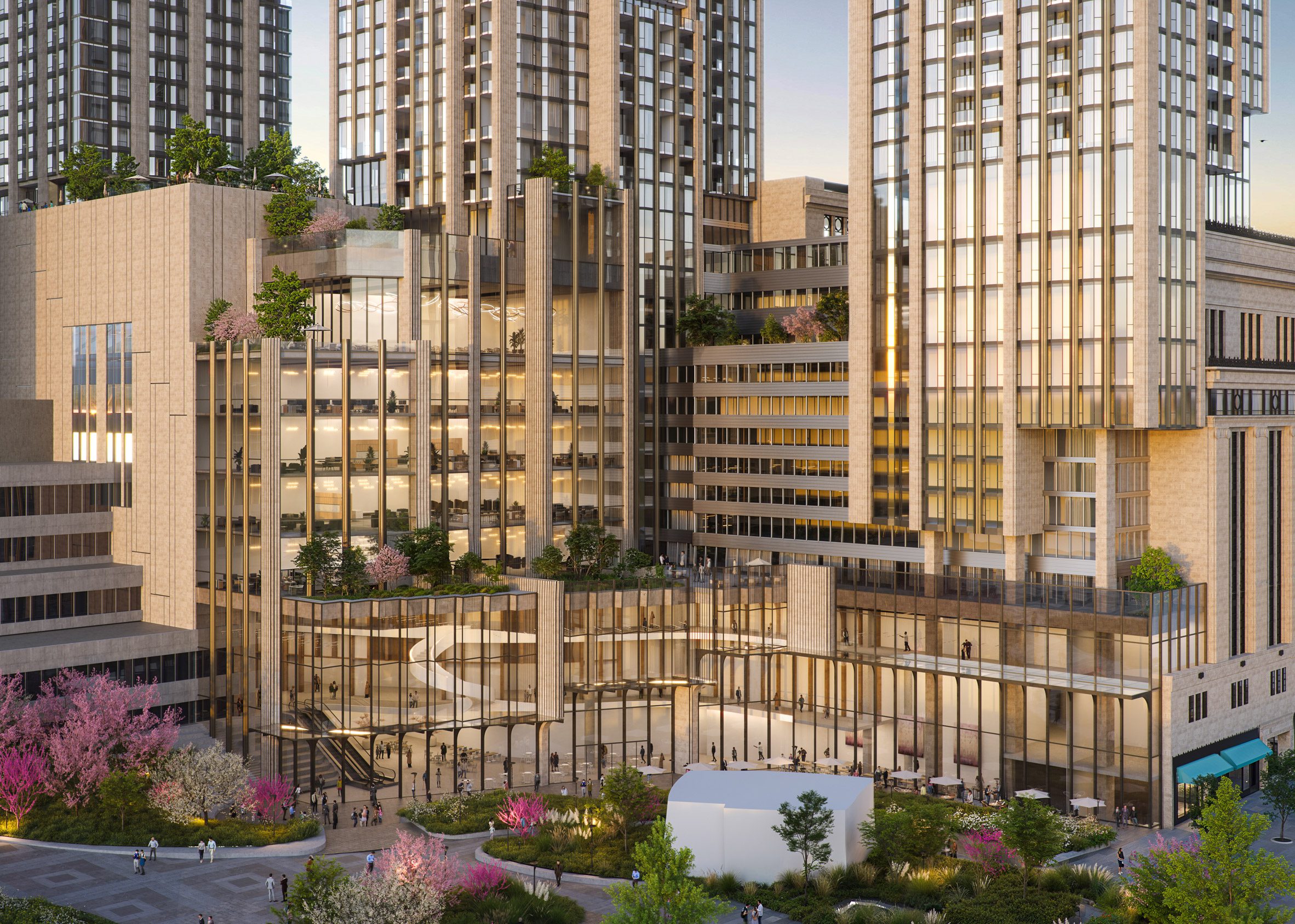 A három új torony – amelyek 65, 75 és lenyűgöző 96 emeletesek, köztük egy "supertall" torony közel 333 méter magas – a város vertikális jövőjét mutatják be. Bár moderneket, mégis organikusan illeszkednek az eredeti art deco stílushoz: visszafogott visszahúzások, fémes szerkezetek és diagranizált felületek idézik a 1920-as évekig visszanyúló építészeti nyelvet. Az építészek, a torontói Hariri Pontarini Architects (HPA) irányításával, David Pontarini elmondása szerint a projekt célja, hogy „ha hunyorítasz, akkor úgy tűnik, mintha College Park egyszerre, egy időben épült volna”. Ez visionárus építészeti illúzió egy valós városi ambíció mögött. Olvass tovább. Kattints ide!
