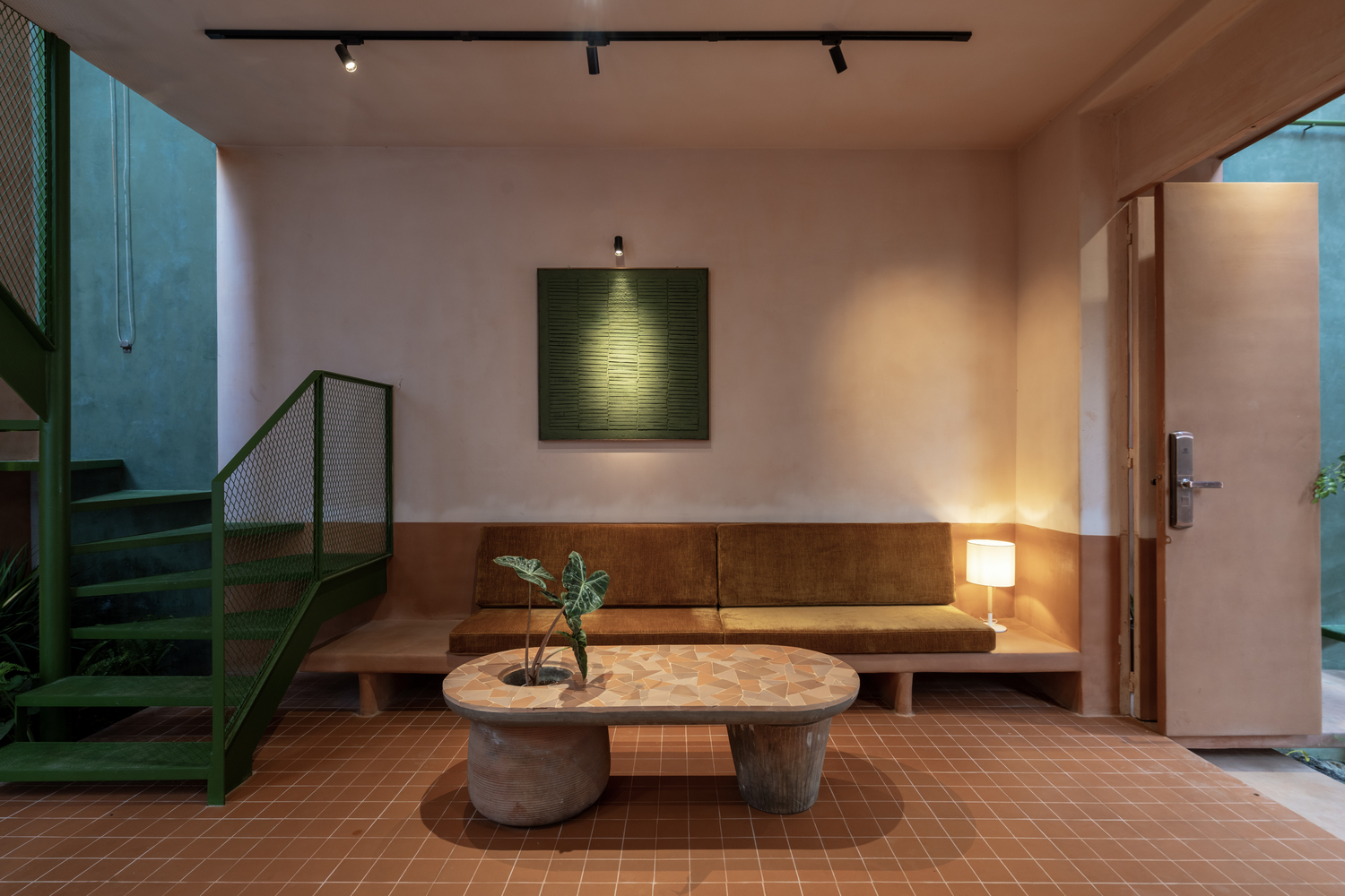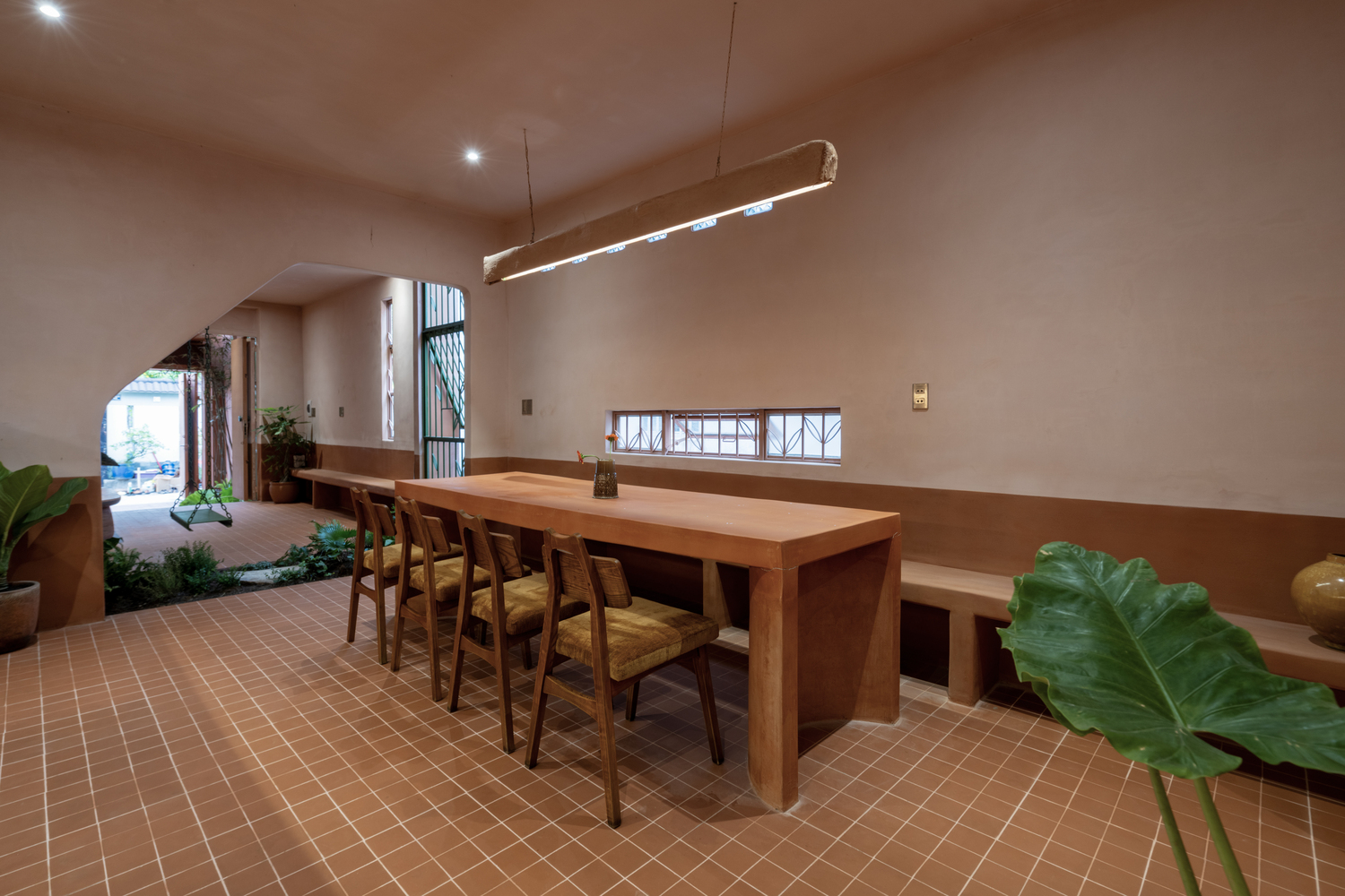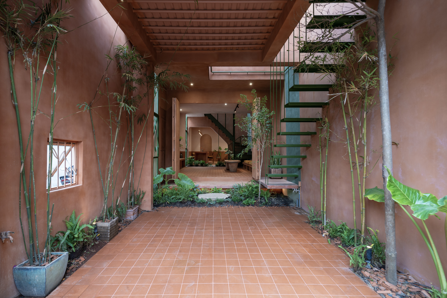 A ház három térfogatra tagolódik egymás után, mint három terrakotta edény, amelyek harmonikus egésszé egyesülnek, megalapozva, összefüggően, és átitatják a föld leheletét. Az első "edény" nyitott verandaként szolgál, átmeneti puffert hozva létre a fő lakóterületekbe való belépés előtt. A kulcsterek, mint a nappali, a hálószoba és a konyha még inkább visszaszorulnak a második és harmadik „edény” térfogatába. Ezen kívül az első térfogat felső szintjét nyitott teraszként használják étkezőasztallal és szabadtéri konyhával. Ez a tér segít lehűteni a szerkezetet, üdvözli a természetes szellőt, és ideális kapcsolódási pontként szolgál az emberek és a természet között. Itt összegyűlhetnek a háztulajdonosok a barátaikkal, és a szabad ég alatt étkezhetnek – ez egy egyszerű, de autentikus életforma, amely tükrözi a régió szellemét.