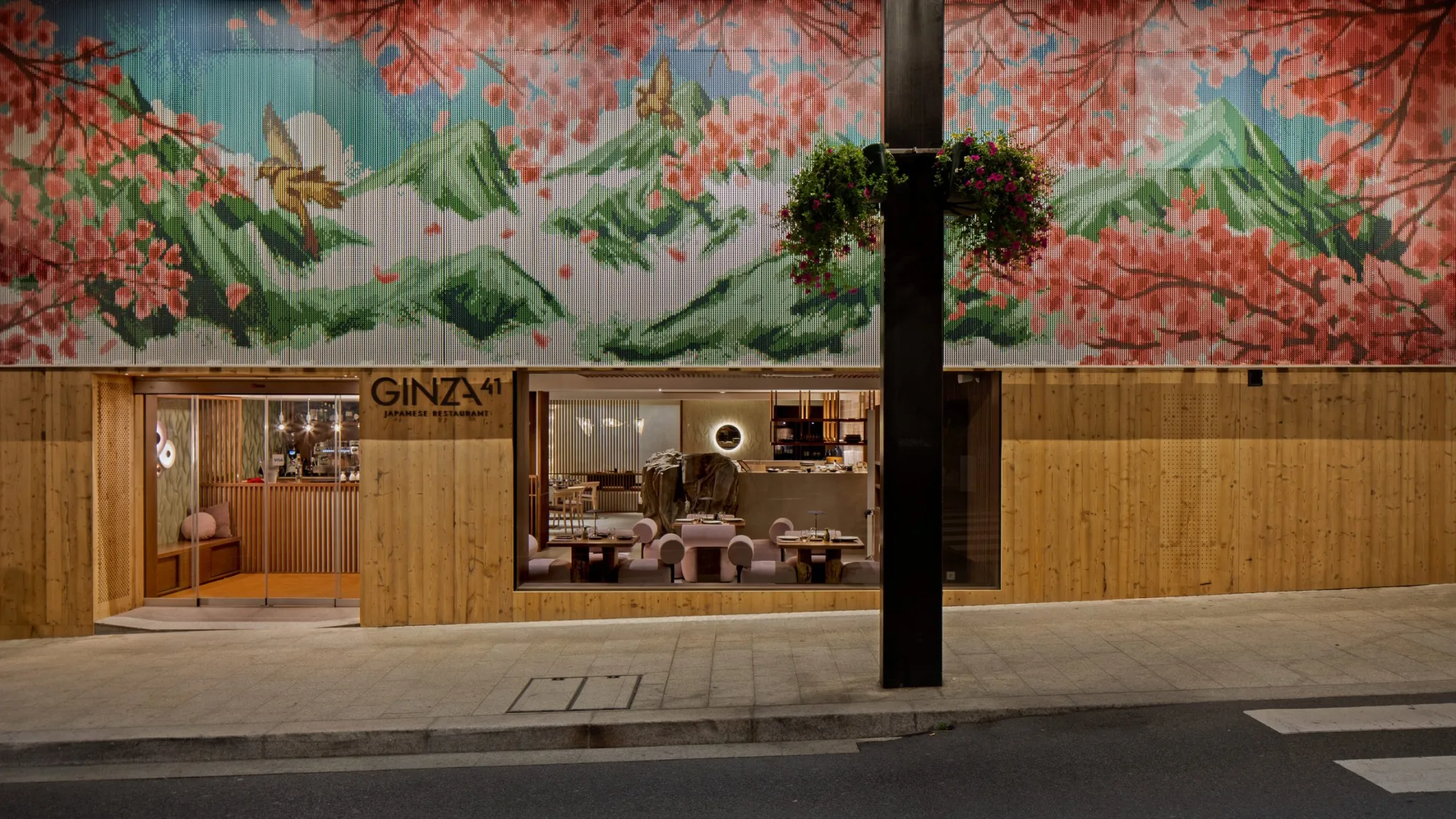 Az új Ginza 41 egyik leglátványosabb eleme a figyelemfelkeltő homlokzat, amelyet azzal a céllal terveztek, hogy magára vonja a járókelők tekintetét Andorra egyik legforgalmasabb utcáján. A homlokzat kialakításához a Kriskadecor KDO Fixed System rendszerét használták, amely eloxált alumínium láncokból áll, és egy japán ihletésű, nagy felbontású képet jelenít meg. Ez a dizájn nemcsak látványos bejáratot biztosít, hanem magába foglalja a felette található szálloda ablakait is, biztosítva a megfelelő szellőzést az esztétika megtartása mellett.