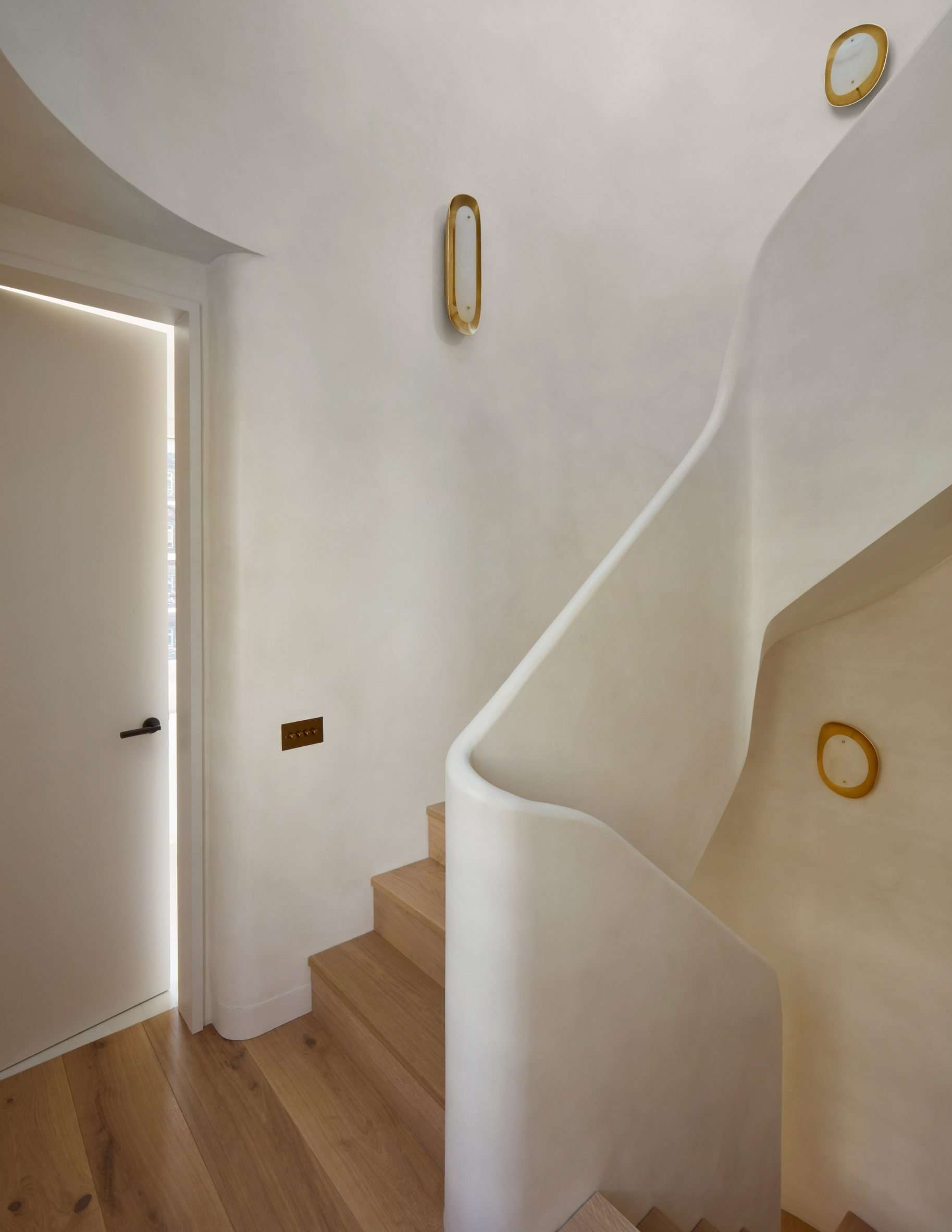 Ahogy a tetőablakokon átárad a fény, a lépcső szinte életre kel, dinamikus formájával pedig egyszerre válik funkcionális szerkezetté és látványos műalkotássá. Az otthon különösen személyes, hiszen a Michelin-csillagos séf, Andrew Wong itt nőtt fel, és most családjával tért vissza, hogy egy új, letisztult, de otthonos térben élhessen. A ház átalakításában a megbízók legfőbb kívánsága az volt, hogy az enteriőr egyszerre legyen családbarát, ugyanakkor hordozza magában a marokkói nyaralások emlékeit.