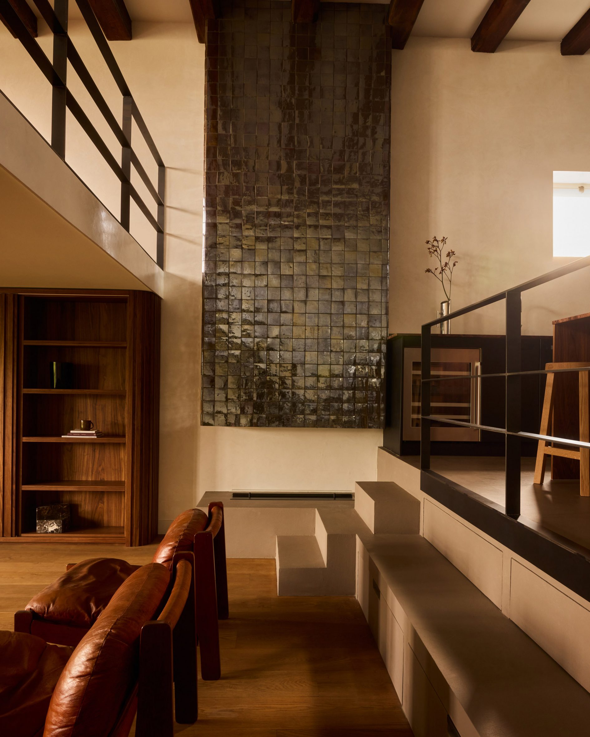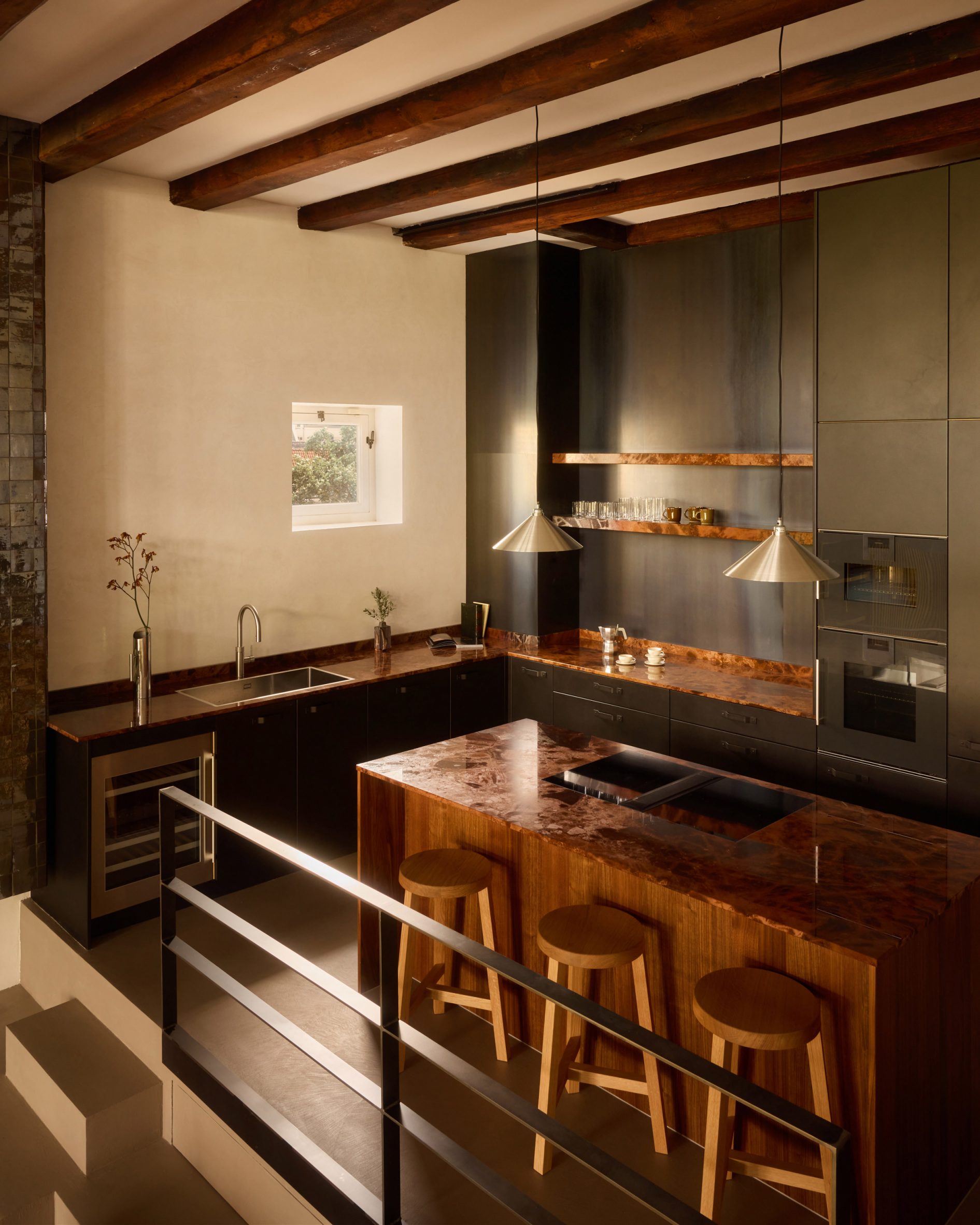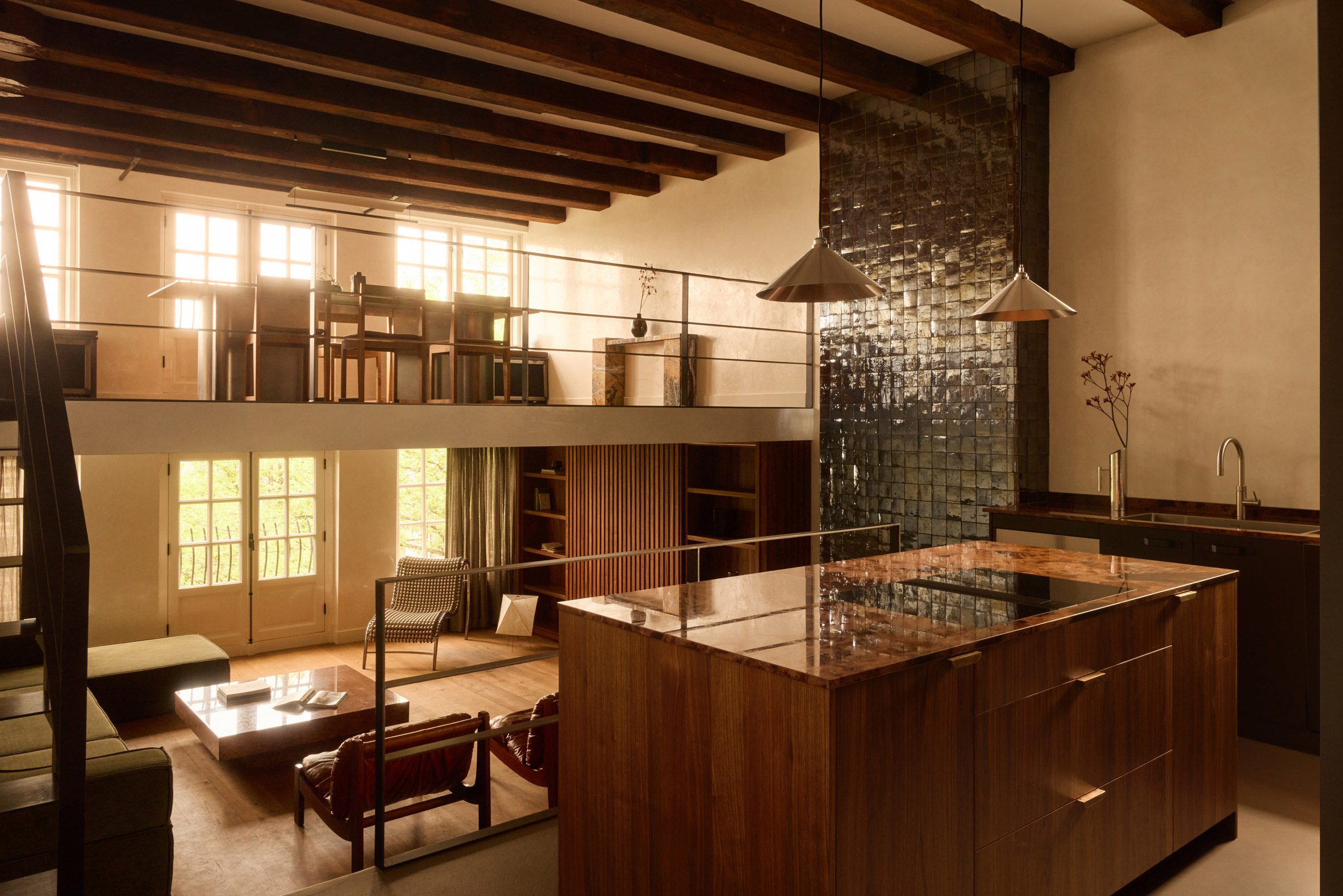 Az átalakítás során a tér kellemes kontrasztot kapott: az ipari múlt rusztikus elemei, mint a nyers vasbeton, az olajozott tölgyfa gerendák és a meleg acél részletek, finoman játszanak a modern, letisztult formákkal. A belvárosi csatorna felé néző üvegfalak nappal a városképet tükrözik, este viszont visszatükröződő fényként emelik a belső tér hangulatát. Az egyedi, multifunkcionális bútorelemek — például a fürdővel kombinált fekete falazat mögött rejtőző háló és könyvtári megoldás — egy újfajta otthonélményt kínálnak.