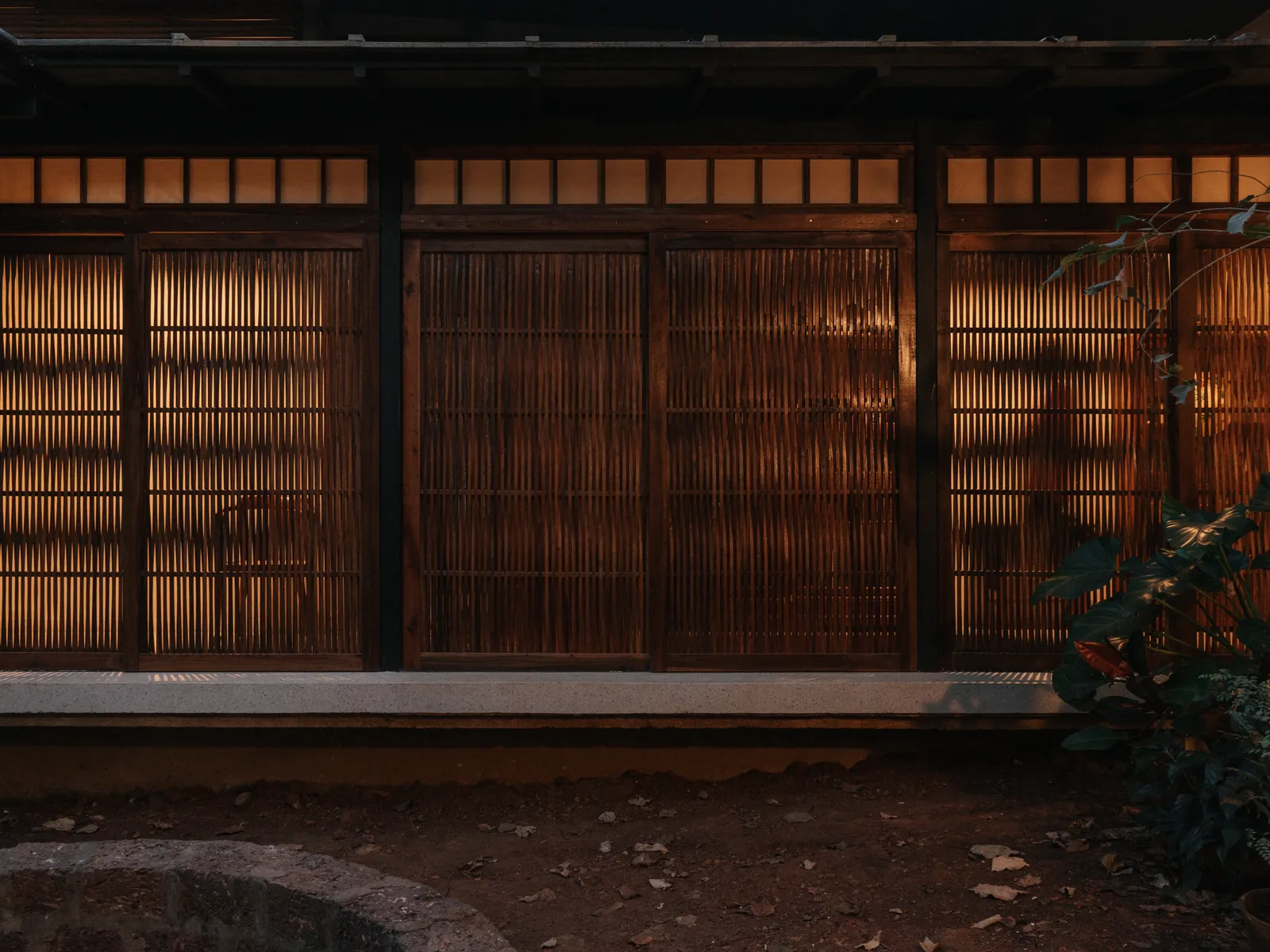 A hosszú folyosó bazalttetővel, a fa lamellákból készült tolóablakok és a könyvespolcokkal teli terek napfényes, pihenésre hívó zugokat hoznak létre. A bejáratnál a folyóparti kavicsok burkolata különleges tapintású, földhöz kötő hangulatot ad, míg a belső terek és a verandák folyamatosan áramló, árnyékos átmeneteket teremtenek a kert és a ház között. A ház emelt alapon áll a monszunszerűen áradó talaj miatt, és a verandák gondosan a kertek felé tájoltak, így minden szögből más-más, rétegzett panorámát élvezhetünk. A nagy kert, a központi tér, a lakó- és étkezőverandák, valamint a déli kert olyan egységet alkotnak, mintha apró folyók folynának össze, állandóan párbeszédet teremtve a belső és külső terek között.