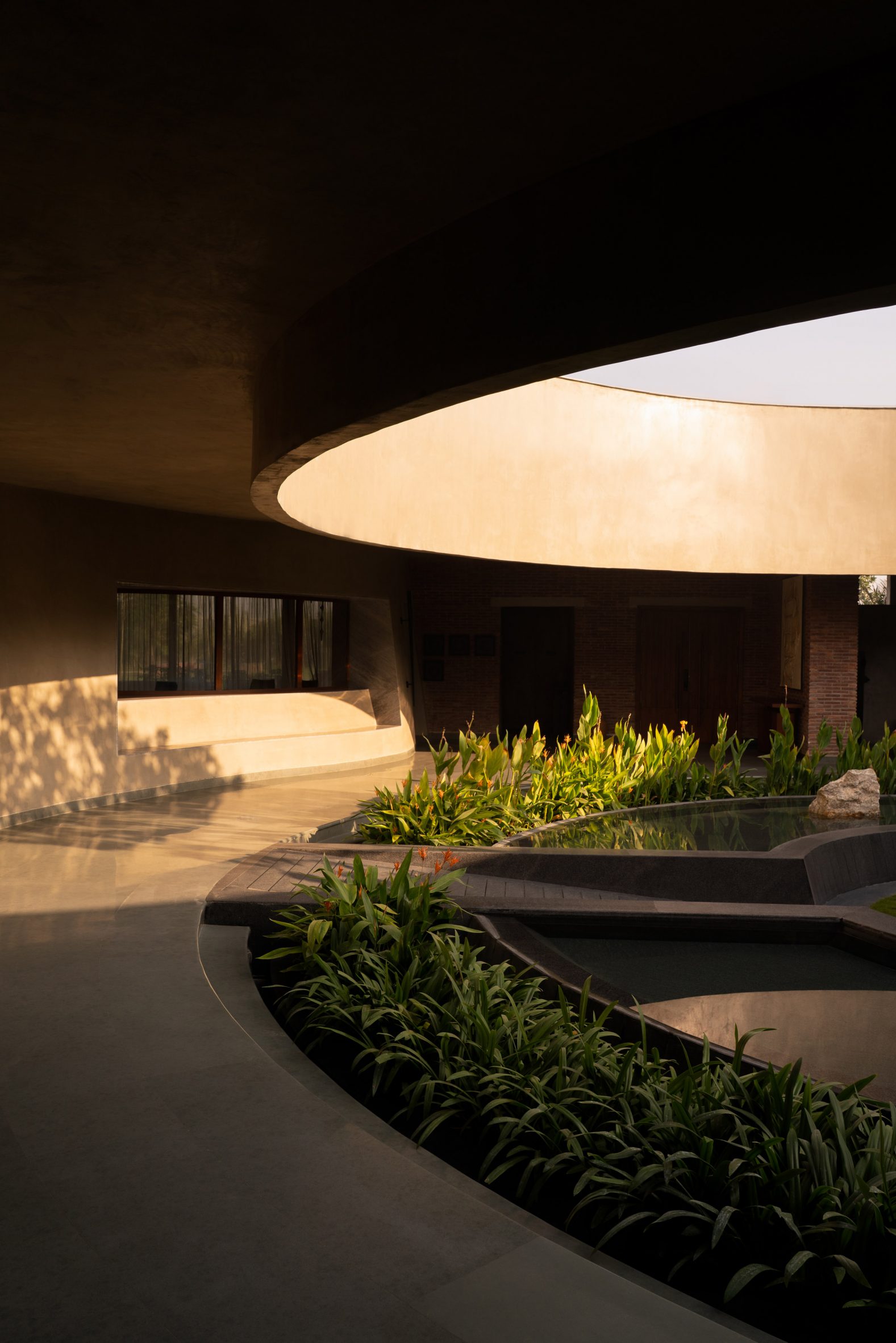 A Renesa építésziroda új, alacsony építésű otthona, a The Sanctum Punjab államban, India szívében drámai, geometrikus tömegek és az íves falak ölelésében helyezkedik el. A 1 115 négyzetméteres ház központi eleme egy kör alakú, vízzel teli udvar, amely a térbeli és érzelmi magja az egész otthonnak. A körbeölelő beton- és téglafalak a mozgást, a fényt és az élményt irányítják, miközben alternatívát kínálnak a vidéki India hagyományos, „dobozszerű” házaival szemben.