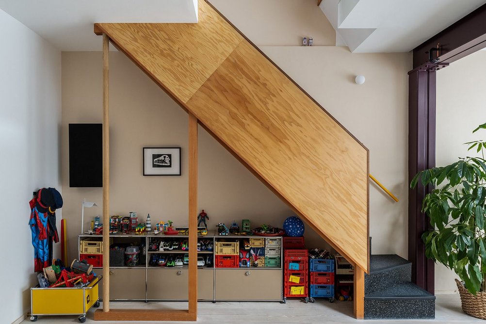 A ház fenntarthatósági megoldásai közé tartozik a lég-víz hőszivattyú, amelyet egy elegáns, corten-acél burkolat rejt a kertben, valamint az elektromos rendszerre való teljes átállás. A kertben zöldtető és esővízgyűjtő rendszer is segíti az ökológiai egyensúlyt. A korábban szűk lépcsőházat új Douglas-fenyő és vörös rétegelt lemezből készült lépcső váltotta fel, tele kézzel készített bútorokkal és beépített hangrendszerrel – az egész ház központi zenei stúdióként is funkcionál. Olvass tovább. Kattints ide!