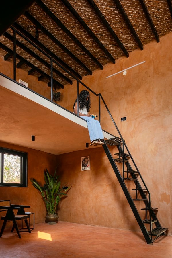 Az Aki Builds építészeti stúdió filozófiája szorosan összefonódik a környezettel – nem csupán tiszteletben tartja, hanem aktívan épít is rá. A Soil and Soul Studio projektjük külső, tágas udvarral rendelkezik, mely átmeneti zónaként működik: segíti a természetes szellőzést, és közvetlen kapcsolatot teremt a környező erdővel és a több évtizedes fákkal. Ez a nyitott tér kiterjeszti a lakózónát a szabadba, így a határ a mesterségesen épített és a természetes között szinte teljesen elmosódik.