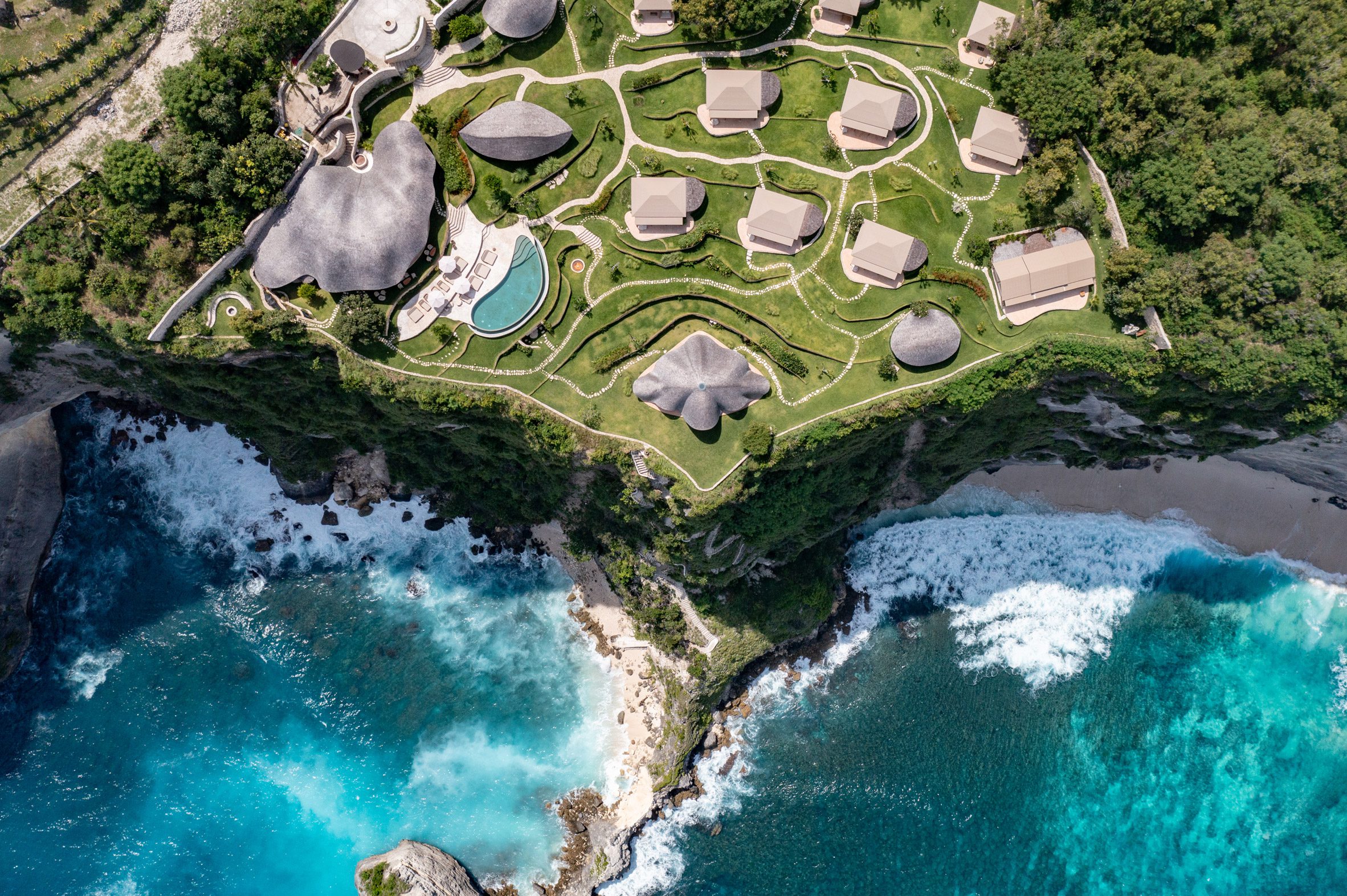 Az Nusa Penida sziklaperemén álló Intaaya Retreat különleges wellnessközpont, ahol a Pablo Luna Studiotermészetes, helyi anyagokkal hozott létre fenntartható építészeti élményt. A hullámzó bambusztetők, az ulin fasindelyek, a rammed earth falak és a helyi mészkő mind hozzájárulnak a minimális ökológiai lábnyomhoz, miközben harmonikusan illeszkednek a tengerparti tájba.
