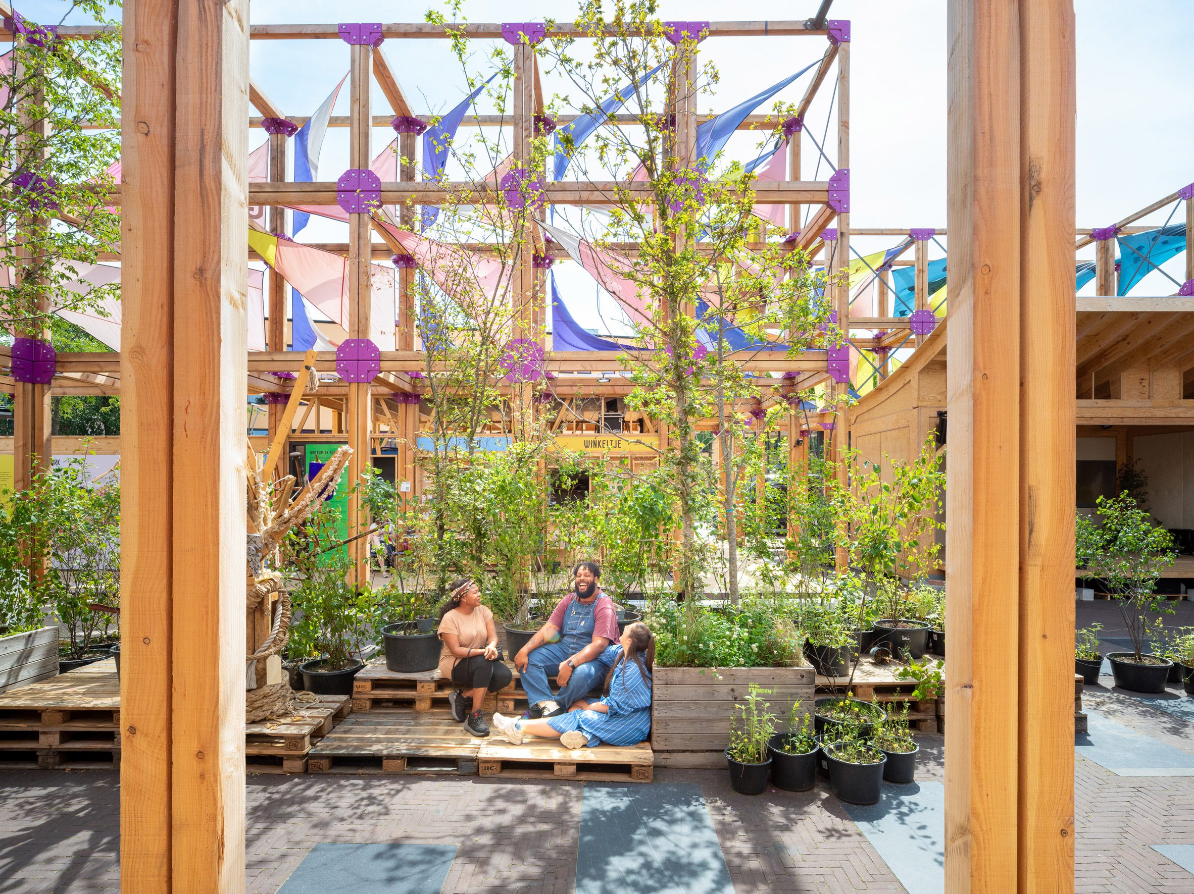 A mienskip, vagyis a közösség részvétele ugyanolyan fontos volt, mint az anyagok. A Knitting Café De Steek készítette a Whitebox panelokat, a helyi lakosok programokat formáltak: művészeti workshopoktól kezdve tánc- és kvízesteken át a reggeli tornáig és alternatív vasárnapi találkozókig. Az alkotók is központi szerepet játszottak: Peng Zhang zöldségeskertből alakította stúdióját, Koos Buster adományedényeket készített, Gabriel Chaille pedig a közösségi sütést biztosító Brenda kemencét építette. Olvass tovább! Kattints ide!