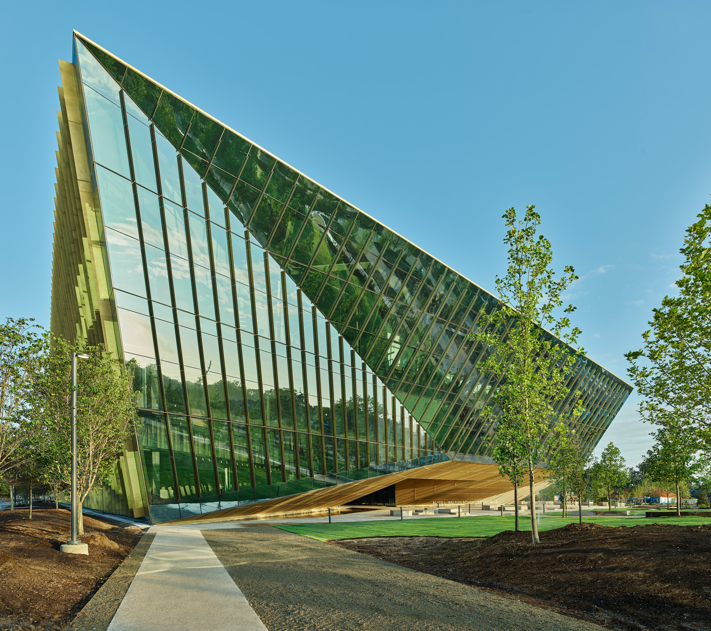 Bentonville városában valósult meg az Alice L. Walton School of Medicine új épülete, amely a korszerű oktatási funkciók mellett a fenntarthatóságot is középpontba helyezi. A Polk Stanley Wilcox által tervezett intézmény szerves kapcsolatban áll a környező tájjal, és számos környezetbarát megoldást alkalmaz.