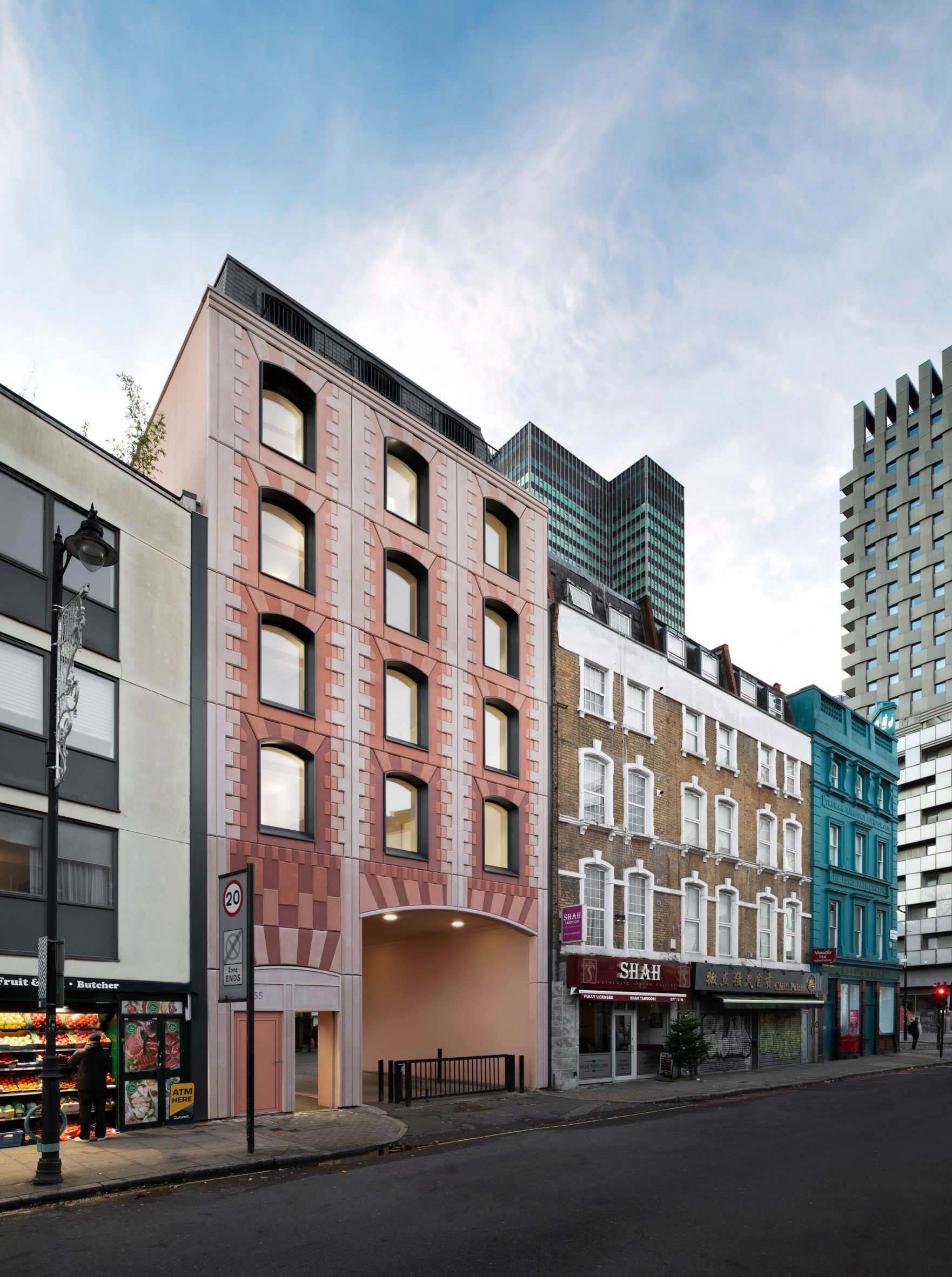 A londoni Bureau de Change építésziroda egy 1980-as évekbeli lakóépületet újított fel Eustonban, különleges rózsaszín betonpanelek segítségével. A homlokzat különlegessége, hogy a paneleket az épület bontásából származó anyagokból készítették, így a projekt egyszerre tiszteleg a múlt és alkalmaz fenntartható építészeti megoldásokat. Az átalakítás során az épületet két új szinttel bővítették, összesen öt lakást alakítva ki hat szinten.