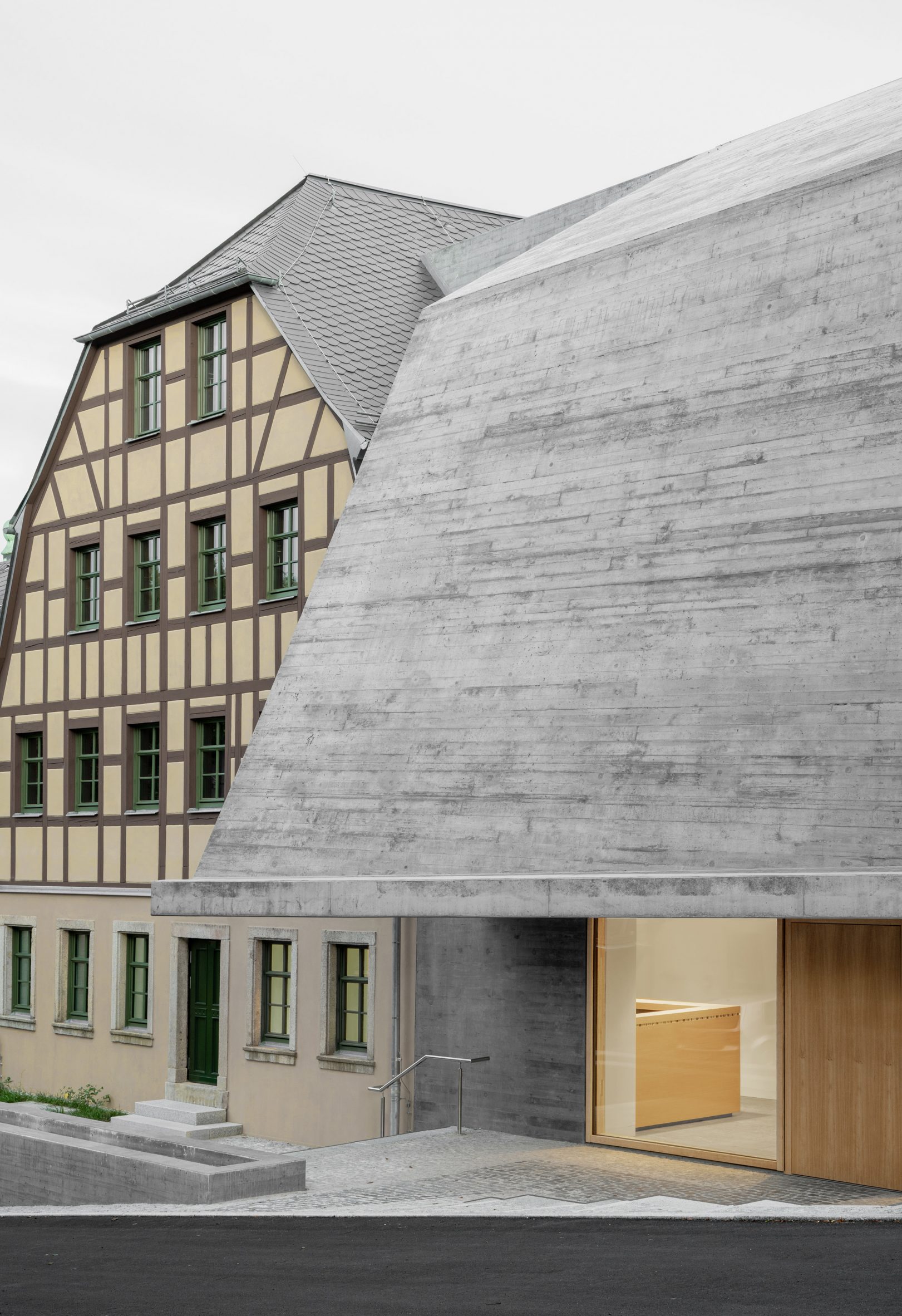 A hagyományos, történelmi építészet és a kortárs építészet izgalmas találkozásából született meg a Mother-of-Pearl Experience Museum, amely új kulturális fókuszpontként ragyog Adorf város szívében, Németországban. A Schulz und Schulz építésziroda egy merész, mégis érzékeny megközelítéssel formálta újjá a korábban elhanyagolt telket: a hagyományos favázas házak közé egy szoborszerű betonépület ékelődik, amely már első pillantásra ikonikus látványt nyújt.
