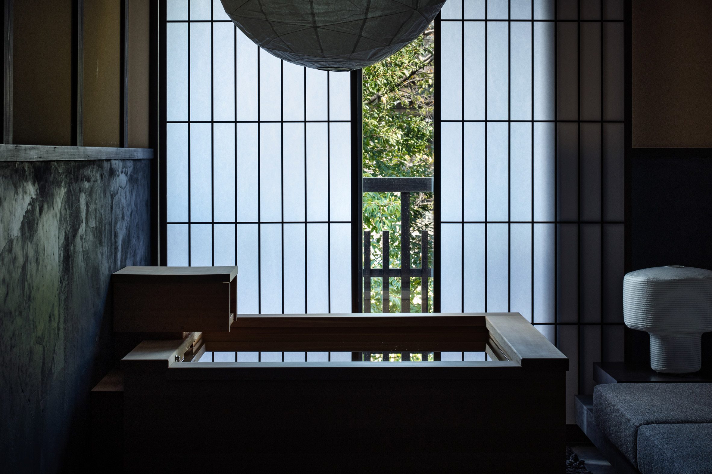 A ház hét vendégszobája és a földszinti közös terek a természetes fény és árnyék játékára épülnek, így a terek egyszerre nyújtanak nyugalmat és intimitást. A shoji tolóajtók, a futon bútorok, a kézzel készített papírlámpák és a földszínekben gazdag falak a hagyományos ryokan élményt idézik, miközben a modern vendéglátás kényelmét kínálják. A stúdió külön hangsúlyt fektetett a fürdőterekre, amelyek minden vendégszobában központi szerepet kapnak. A földszinti lakosztályok nyitott, kővel burkolt szabadtéri fürdői, valamint a felső szinten elhelyezett spa-szerű hinoki ciprus kádfürdők a japán fürdőkultúra kortárs interpretációját nyújtják, ahol a háló és a fürdőtér egy térbe olvad, egyedi nyitottságot és exkluzív élményt teremtve.
