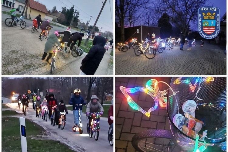 A hideg sem vette kedvét a vállalkozó szelleműeknek Magyarkeresztúron, hogy díszbe öltöztetett, kivilágított kerékpárra üljenek és megmutassák közlekedési tudásukat.