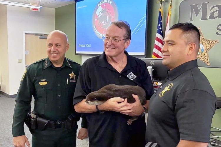 Az Egyesült Államok első mentővidrája mutatkozott be a floridai Martin megyei seriffhivatalban, ahol osztatlan érdeklődés fogadta az állat megjelenését.