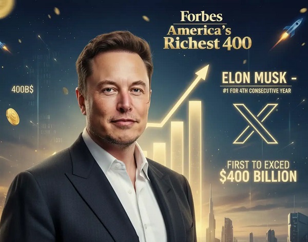 A 400 leggazdagabb amerikai vagyona elérte a rekordot jelentő 6600 milliárd dollárt, Elon Musk továbbra is a lista élén áll - számolt be a Forbes magazin.