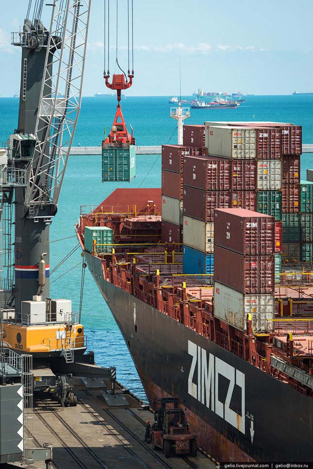2013-ban 141 millió tonna rakomány mozgatását bonyolították itt le. A konténerekben különféle acéltermékek, ömlesztett áruk, élelmiszer termékek, és cukor szállítását bonyolítják le. A hajókról a konténerek Novorossiysk vasútvonalára kerül a vagonokra, amelyet tavaly 300.000 vagonnal szállítottak tovább.
