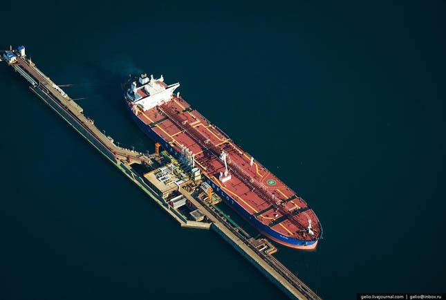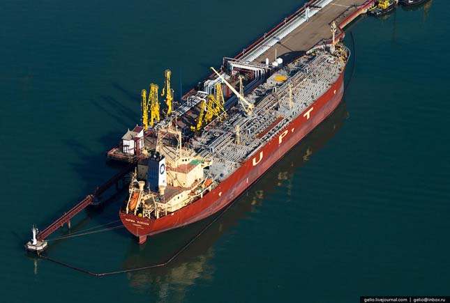 A kikötő szélén található a Sheskharis olajterminál, ahol minden évben a hatalmas tanker hajókat 1,2 milliárd tonna tőolajjal töltenek meg.