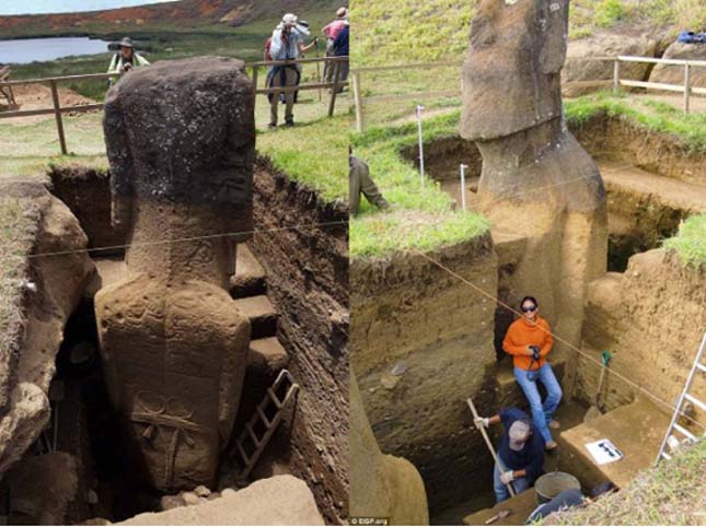 A felfedezés tehát egyáltalán nem új keletű. Az archeológusok dokumentáltan már legalább 100 éve tanulmányozzák a kőszobrokat. A legkorábbi ásatás 1914-ben volt, amikor rájöttek arra, hogy a szobrok törzse nagy jelentőségben a földbe van beásva.