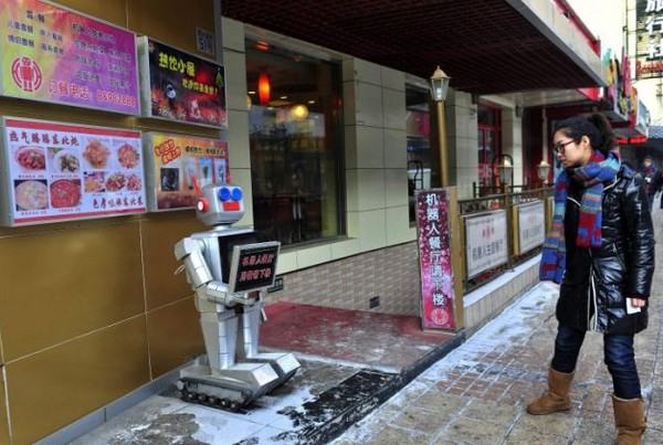 Már az étterem bejáratánál is robot fogadja az alábbi mondattal: "Hello földi személy, üdvözöljük a Robot Étteremben."