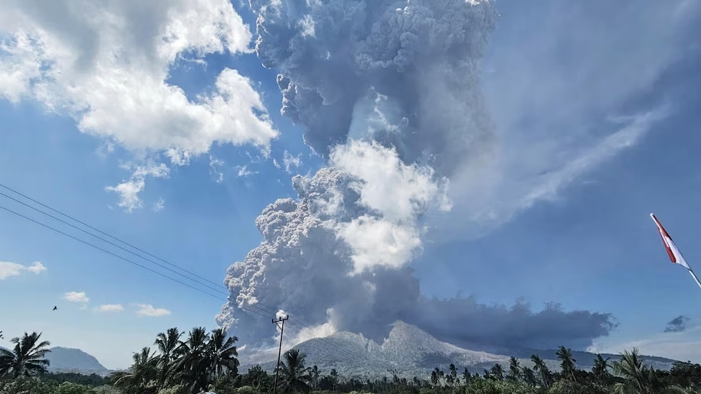 Az Indonézia keleti részén fekvő Flores szigeten kitört a Lewotobi Laki-Laki tűzhányó, amely az indonéz vulkanológiai központ közlése szerint 18 kilométeres hamufelhőt lövellt ki magából, és hamuval szórta be a környező falvakat.