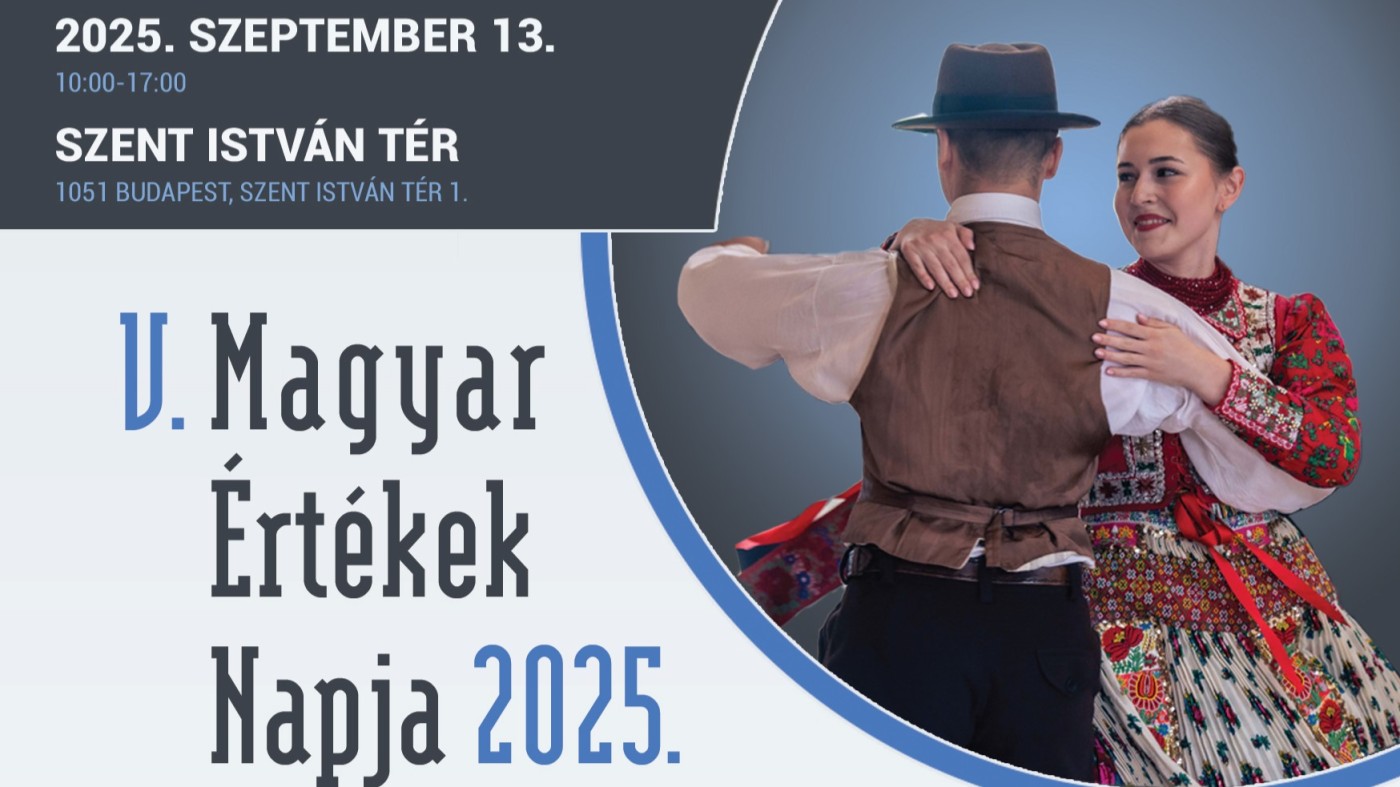 Ötödik alkalommal rendezik meg a Magyar Értékek Napját, a Szent István-bazilika előtti térre 10-től 17 óráig várják a látogatókat - mondta a Kulturális és Innovációs Minisztérium (KIM) művészetért és közösségi művelődésért felelős helyettes államtitkára a közmédia reggeli műsorában csütörtökön.