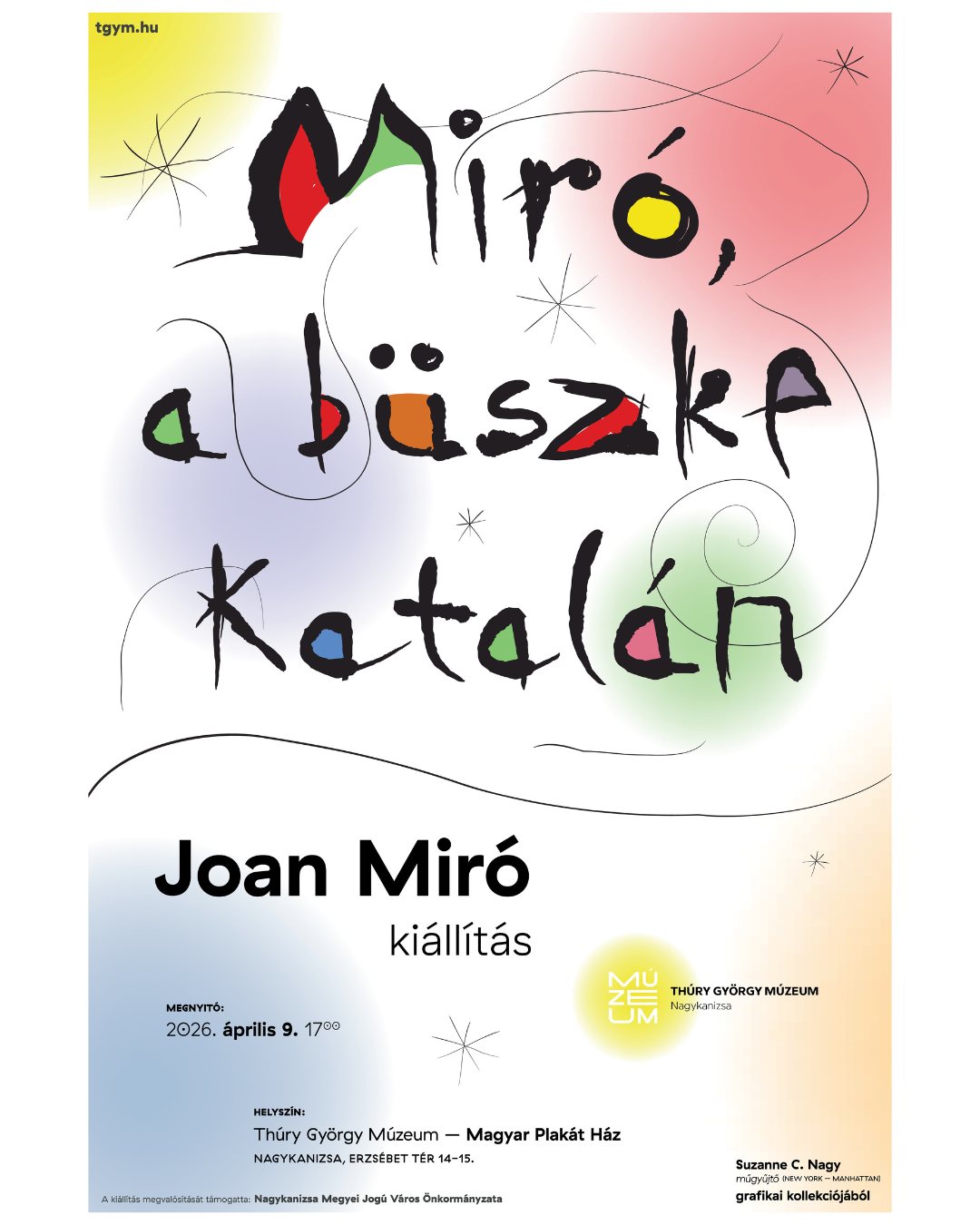 Joan Miró katalán festőművész alkotásaiból rendeznek kiállítást Nagykanizsán - közölte a Thúry György Múzeum igazgatója keddi sajtótájékoztatóján.