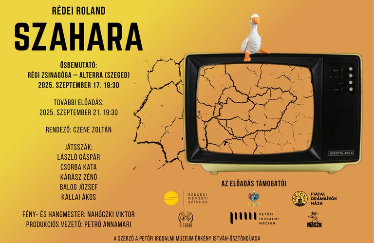 A 2000-es évek elejének dél-alföldi tanyavilágát idézi meg Rédei Roland Szahara című drámája, melyet szerdán mutatnak be a szegedi Régi Zsinagógában Czene Zoltán rendezésében.