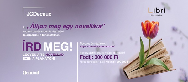 Kilencedik alkalommal hirdette meg a JCDecaux az Álljon meg egy novellára! elnevezésű irodalmi pályázatot, melyre május 15-ig lehet jelentkezni.