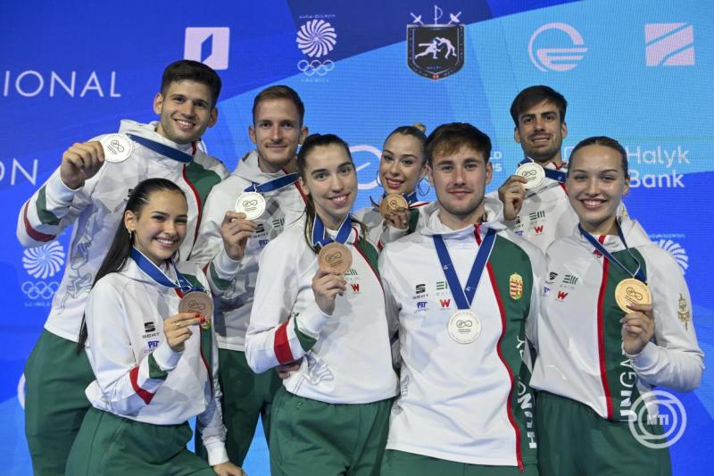 Kiemelte, az éremtábla abból a szempontból nem mutatja a teljesítményt, hogy azok az országok, amelyek szereztek aranyat, előrébb kerülnek, és az érmek száma a rangsorolásnál nem számít. A magyar csapat az éremtáblán kilencedik lett, a dobogós helyezéseket tekintve viszont a franciákkal és az olaszokkal együtt a legeredményesebb volt.Ezüstérmet szerzett a párbajtőröző Siklósi Gergely, valamint a Szilágyi Áron, Rabb Krisztián, Gémesi Csanád, Iliász Nikolász összeállítású férfi kardcsapat, a Siklósi, Koch Máté, Andrásfi Tibor, Keszthelyi Zsombor párbajtőr négyes, illetve bronzot a tőröző Szemes Gergő, továbbá a Szemes, Dósa Dániel, Mihályi Andor, Tóth Gergely férfi tőrválogatott és a Battai Sugár, Szűcs Luca, Pusztai Liza, Katona Renáta alkotta női kardegyüttes.