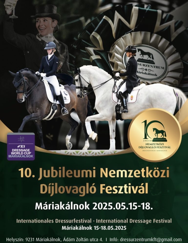 Csütörtöktől vasárnapig Máriakálnokon rendezik a jubileumi, tizedik Nemzetközi Díjlovagló Fesztivált és Világkupát.