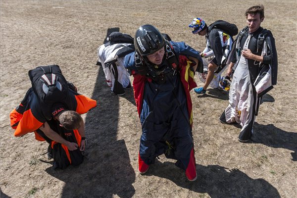 Egy versenyző kiugrik egy MI-8 típusú helikopterből az augusztus 13-19 között megrendezett Wingsuit Boogie szárnyas repülőruha fesztiválon és versenyen a Siófoki-Kiliti repülőtér felett 2012. augusztus 14-én.