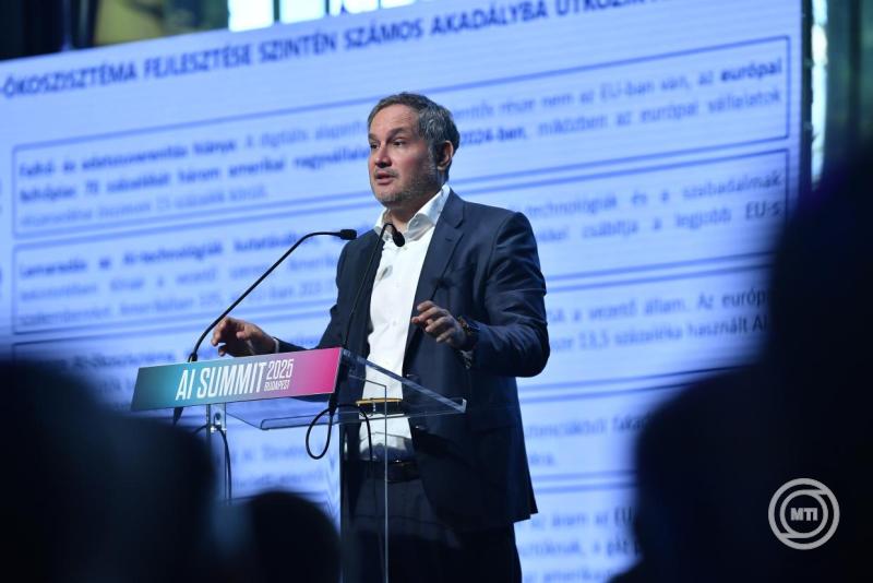 A tárcavezető az AI Summit Budapest 2025 című, a mesterséges intelligencia fejlődését, trendjeit és gyakorlati alkalmazásait bemutató nemzetközi konferencián kiemelte: nemcsak a mindennapi életben, hanem már a reklámokban és a filmekben is megjelent az AI. Szerinte az AI fontosabb lesz, mint az internet, átalakítja az életet, ugyanakkor a logikát nem tudja pótolni, erről nem szabad lemondania az emberiségnek.A miniszter az Európai kihívások, magyar lehetőségek az AI-korszak hajnalán című előadásában kiemelte, hogy az EU súlyos innovációs deficitben szenved fő versenytársaihoz képest. A Draghi-jelentés alapján a versenyképességi problémák megoldása jelentős beruházásokat igényel, főleg a digitalizáció és az innováció területén, ehelyett mégis a hadiipart fejlesztik - mondta.