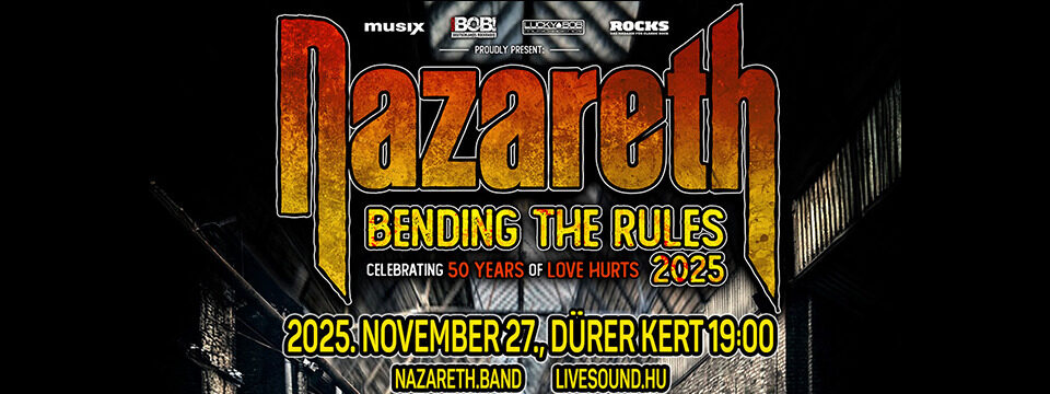 Ötven évvel ezelőtti rockslágerét, a Love Hurts-öt is eljátssza a Nazareth november 27-én a fővárosi Dürer Kertben. Az évforduló a legendás skót zenekar Bending the Rules című turnéjának egyik apropója.